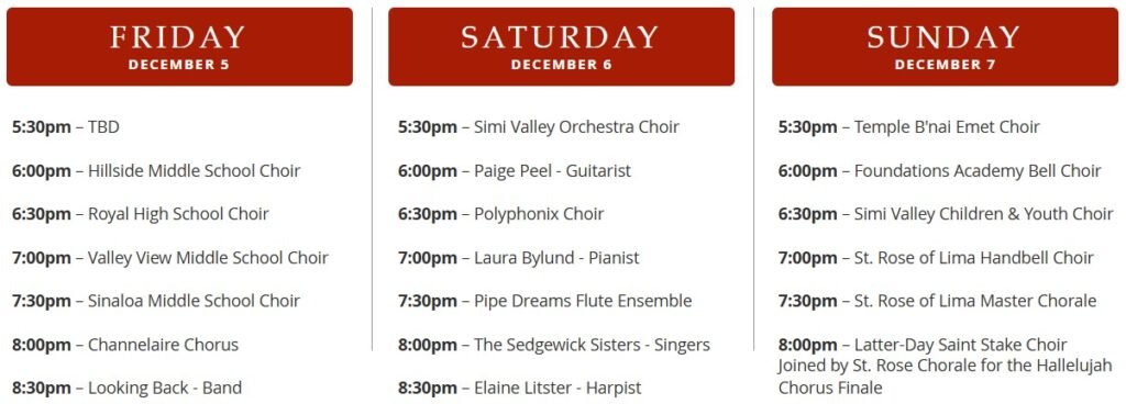 Simi Community Christmas is a free, three-day interfaith event featuring nativity displays from around the world, along with Christmas concerts by local choirs, musicians, dancers, and performances by our local schools.